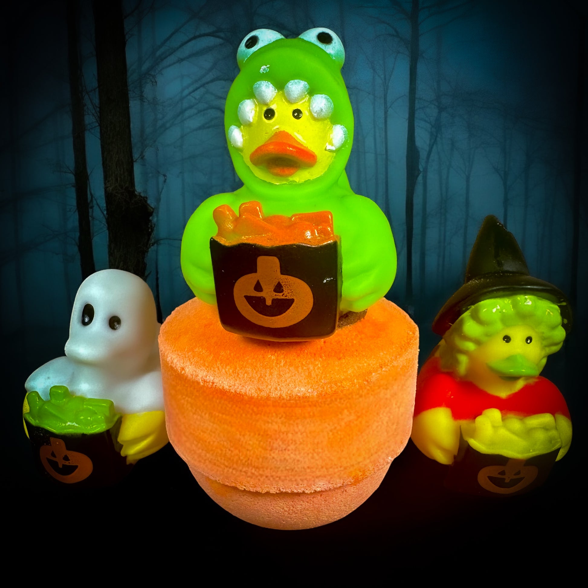 Brand new and freshly made! Our super cute Rubber Duck Bath Bomb now has a "spooky" version, perfect for adding a playful twist to your bath time this Halloween season.